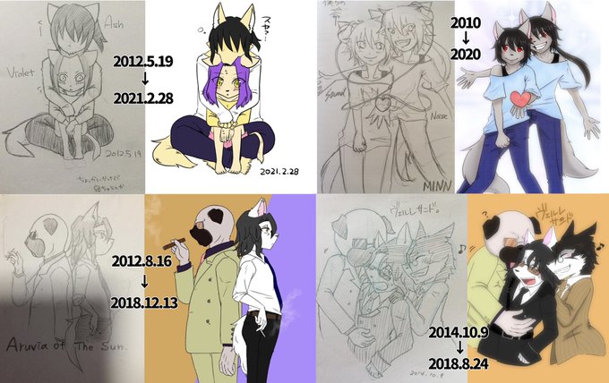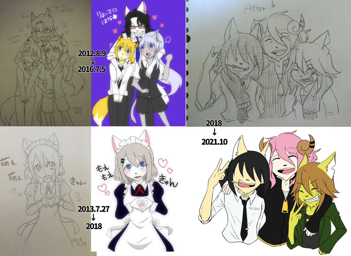 #見た絵師さん強制初投稿の絵と今の絵を比べる 今はサービス終了したブログに絵を載せていた時代がほんのちょっとあったからそれが最古の投稿だと思うんだけど見つからないから手書きブログ時代の最古のを比較対象にするね 2008年の手ブロ(よその子なのが申し訳ないが…) と 2日前