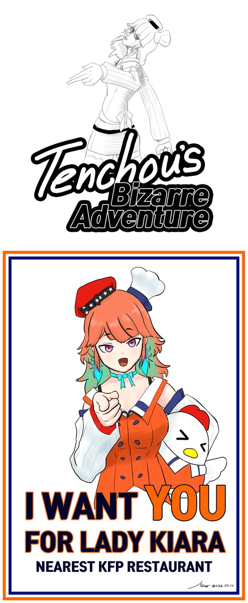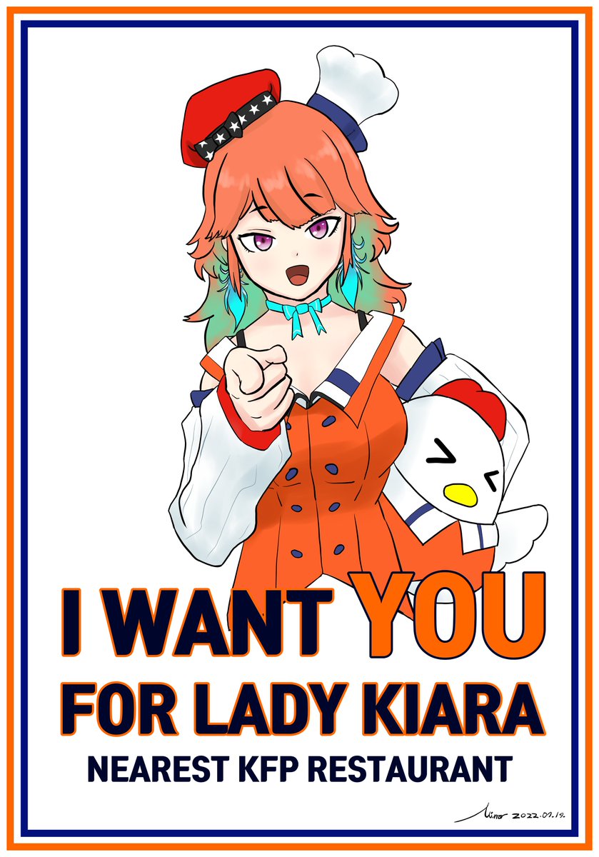 I WANT YOU / FOR LADY KIARA KFP needs you! Go nearest KFP restaurant, right now! #Hololive #HololiveEN #TakanashiKiara #ArtsOfAshes #KFP pixiv.net/artworks/10006โฆ