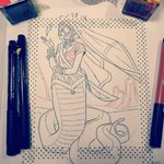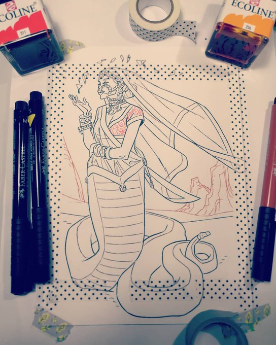 DÍA20: #NAGA Más #INKTOBERTALENS de #MYTHSANDMONSTERS. A color la próxima semana. Acuarela. DIN A5 (148×210 mm). Papel Canson mix media imagine 200 gr.⠀ A LA VENTA 25€+ENVÍO. DM #inktober #inktober2020 #markers #ink #drawdaily #original #INKTOBERCPIERA @casapierabcn #godess
