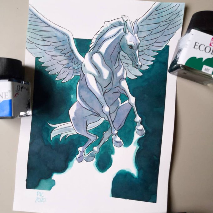 DÍA14: #PEGASO Más #INKTOBERTALENS de #MYTHSANDMONSTERS ¡Dame tu fuerza pegaso para completar el reto! Acuarela. DIN A5 (148×210 mm). A LA VENTA 25€+ENVÍO. DM o pedroj@pedrojcolombo.com #inktober #inktober2020 #markers #watercolor #ink #INKTOBERCPIERA #pegasus @casapierabcn