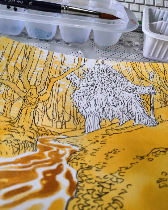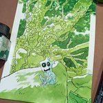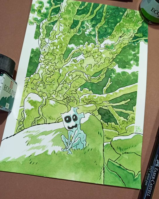 Más dibus extras del #INKTOBERTALENS de #MYTHSANDMONSTERS. DÍA 32: #BASAJAUN Hace días que lo terminé. Los árboles del fondo no los debería haber entintado y que fueran simplemente manchas a color. ORIGINAL A LA VENTA 25€ + ENVÍO. DM S #inktober #inktober2020 #watercolor #ink