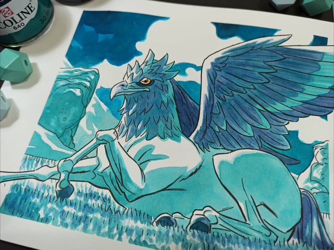 Viaje al pasado 😜😅 DÍA 30: #HIPOGRIFO Más #INKTOBERTALENS de #MYTHSANDMONSTERS. He disfrutado y con el color creo que le he dado el empaque que quería :D Acuarela. DIN A5 (148×210 mm).⠀ A LA VENTA 25€+ENVÍO. DM o pedroj@pedrojcolombo.com #inktober #markers #watercolor #ink
