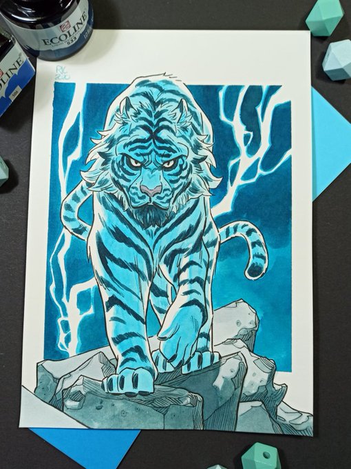 Más extras del #INKTOBERTALENS de #MYTHSANDMONSTERS. DÍA 34: #BYAKKO. Yo sólo quería dibujar un tigre 😝 ORIGINAL A LA VENTA. ⠀⠀ PRECIO: 25€ + GASTOS DE ENVÍO.⠀ Acuarela. DIN A5 (148×210 mm). DM #inktober #inktober2020 #markers #watercolor #ink #drawdaily #original #god
