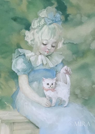 大好きなアンティーク絵葉書へのオマージュ 数年前描いた当時の精一杯だったけど、今見ると直したいところがたくさんあります 来年はまた、こんな雰囲気の絵も描こうと思っています #水彩画 #女の子イラスト #みんなで楽しむTwitter展覧会