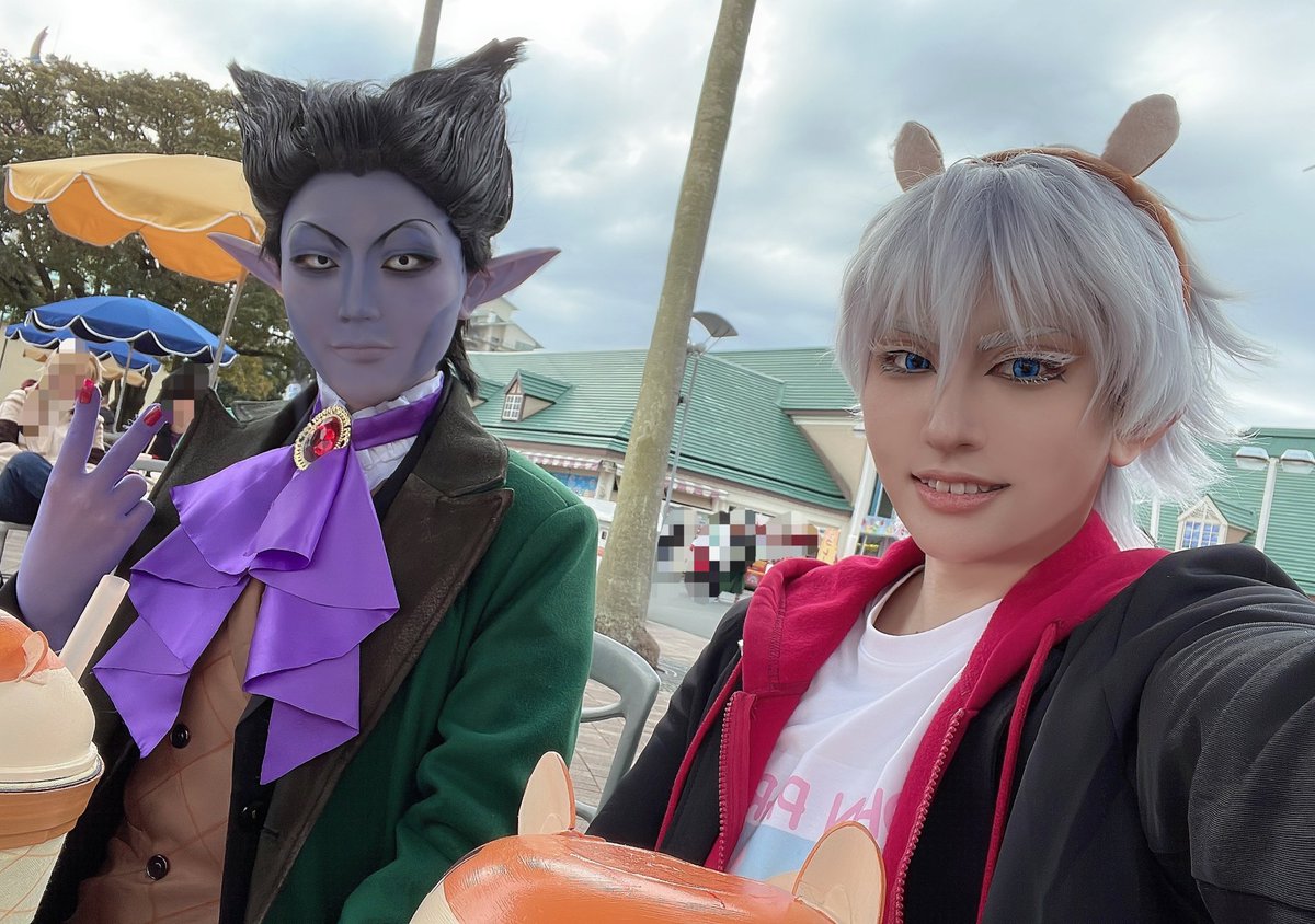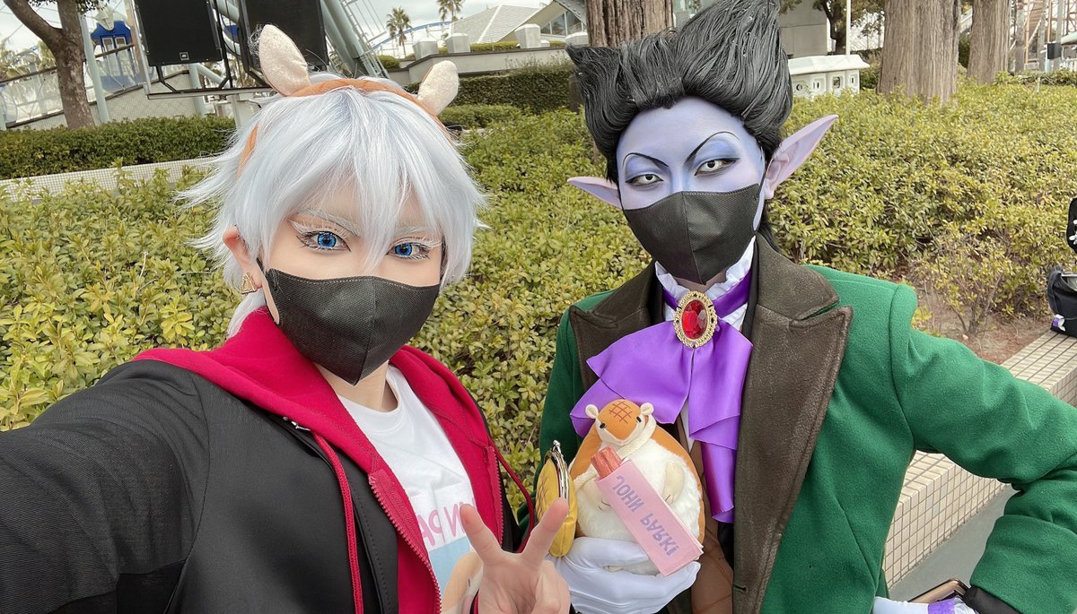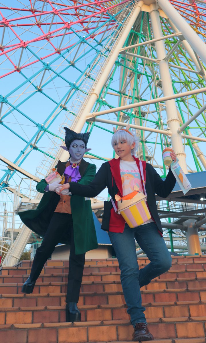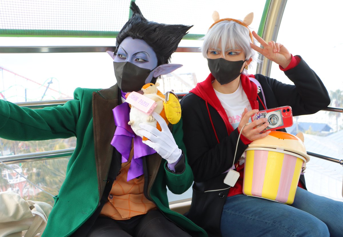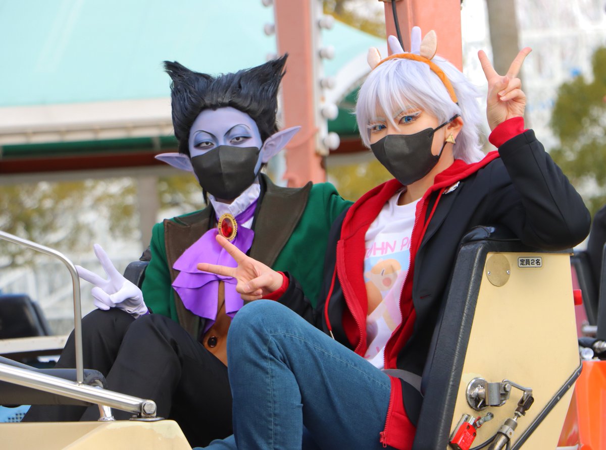 ⚠️吸死 コスプレ⚠️ ⚠️すぐ死ぬ吸血鬼が太陽の元にいるのは許してください🙇⚠️ ✨○o。.【ジョンパーク】.。o○✨ ロナ🦍:@cos_310 ドラ🦇:MIRY ジョン 📷️:お身内 遊園地を楽しむにっぴき✌️