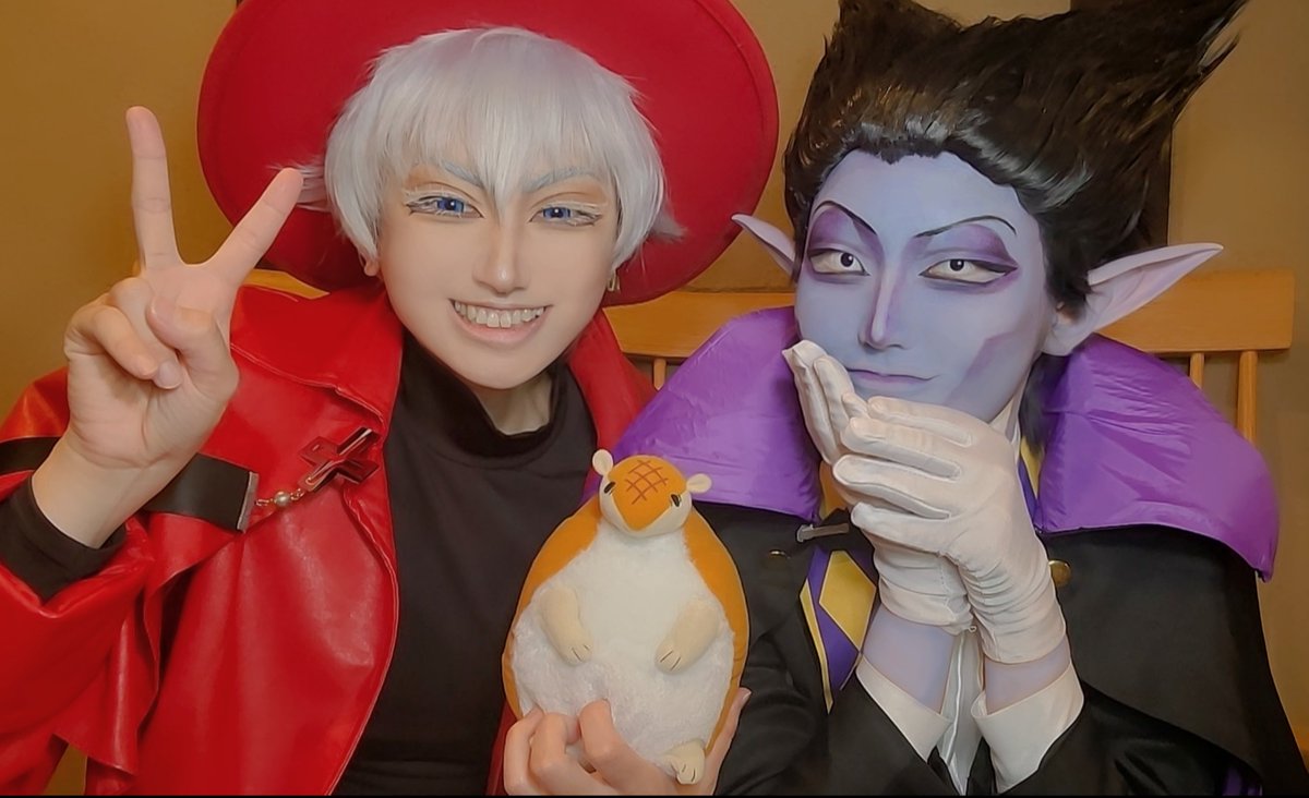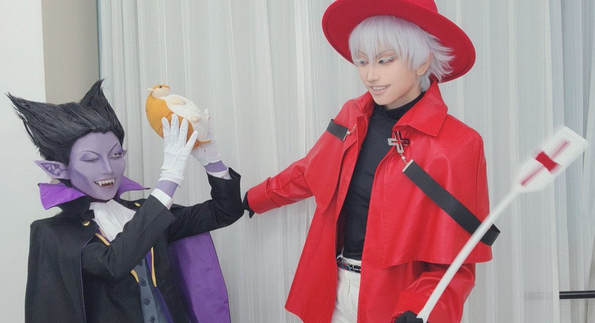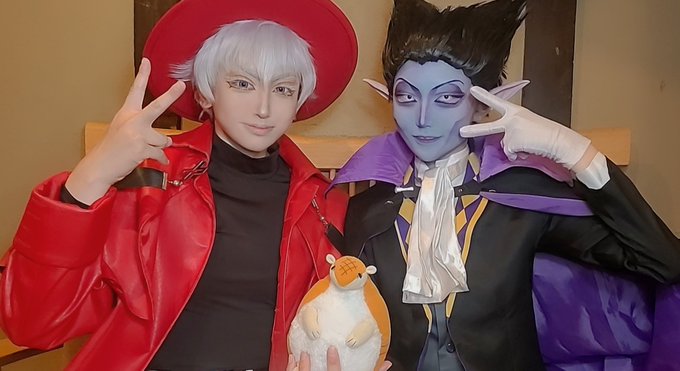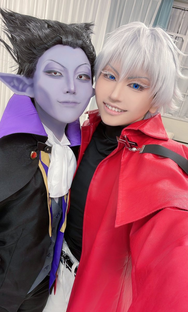 ※cosplay 吸血鬼すぐ死ぬ ⚰️ドラルク→私 ✝️ロナルド→さとちゃん ✨お速報✨ 吸死コラボルーム楽しみついでにコスもしてきた!!!! 初出し通常衣装手直しするところ多すぎてしんどい(笑) 寝落ちて死ぬほど楽しんできた✌️✨ この2人の衣装やりたいの多すぎて困る
