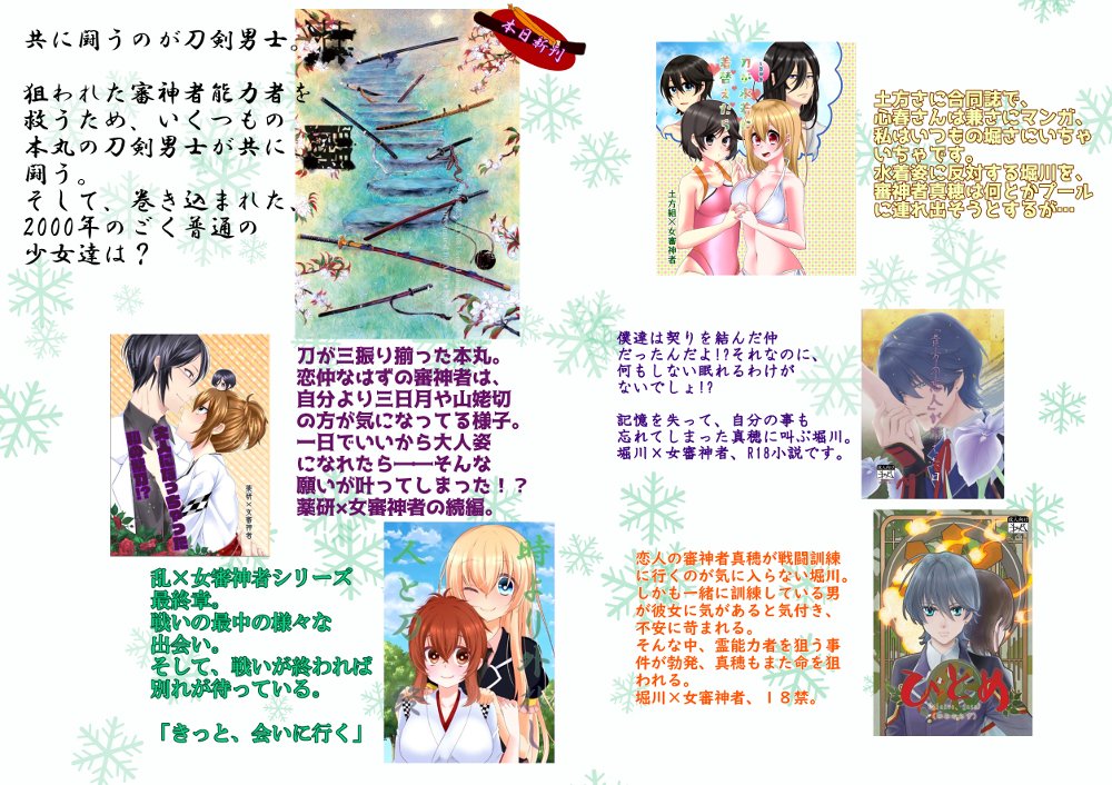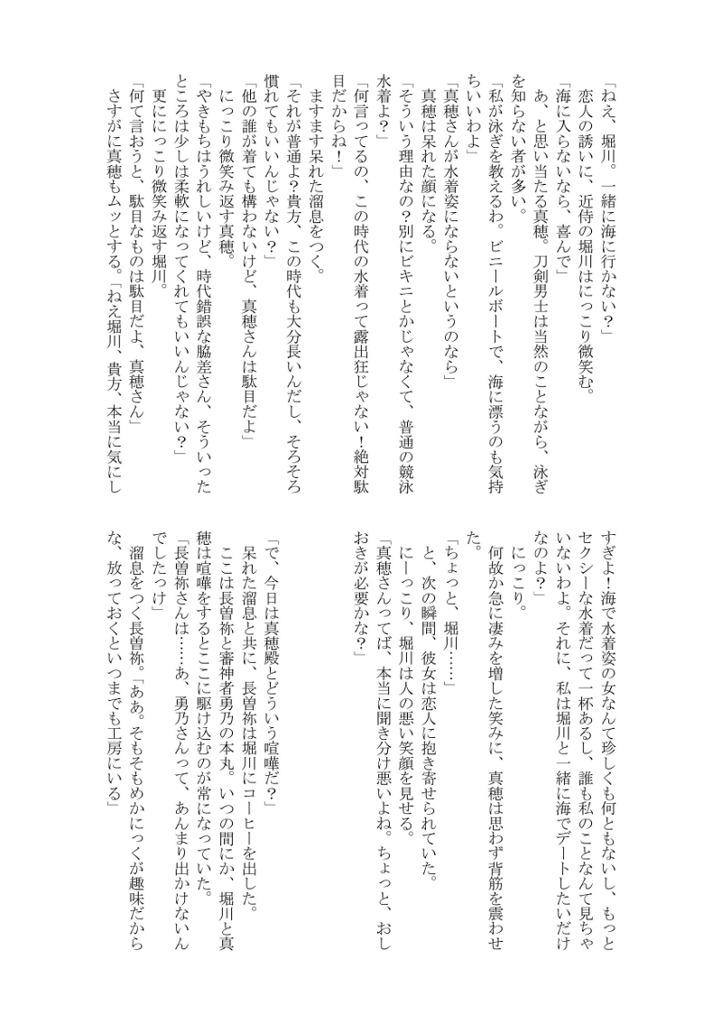 【宣伝】もう一冊、私の堀さに小説と心春さんの兼さにマンガの合同誌です!こちらは全年齢となります。 刀と審神者が水着に着替えたら( MITO物語 きりしまMITO )ec.toranoana.shop/joshi/ec/item/…