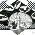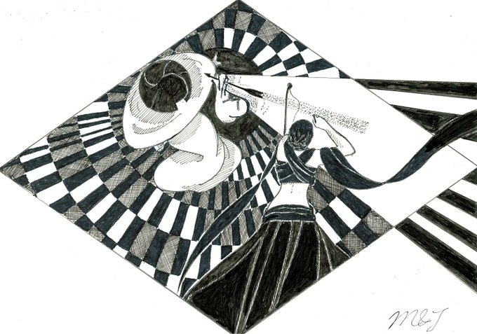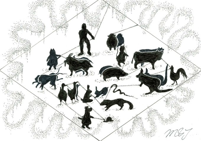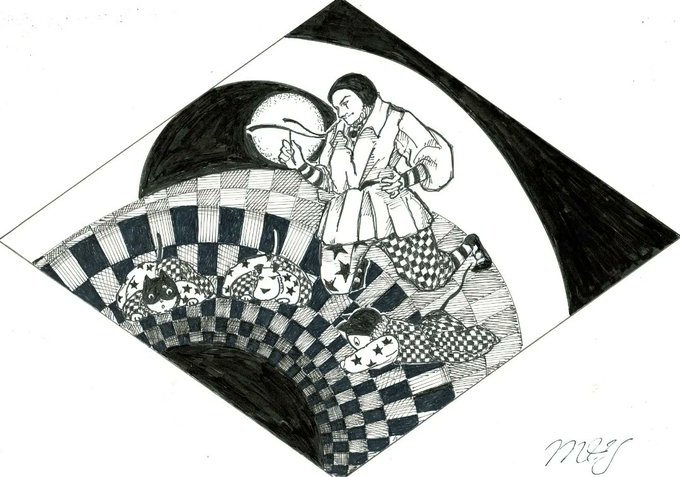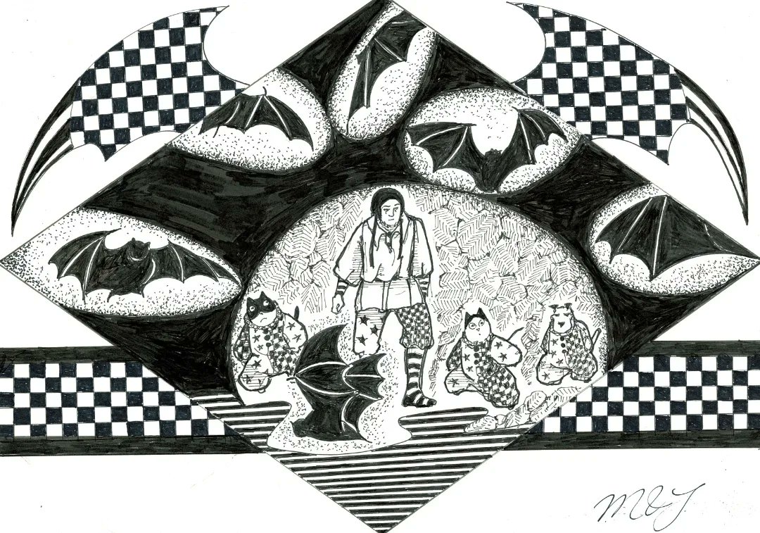 ことが出来るようになった事を確認した道化師達は、この場所を去りました。 暫らく進むと、不思議な光景を目にしました。空には、様々な鳥が飛び交っていますが、どれもが皆、激しく争っていました。 つづく by🎪🃏😸😺🐶《道化師と陽気な仲間たち》 #創作イラ #イラストレーション #連載