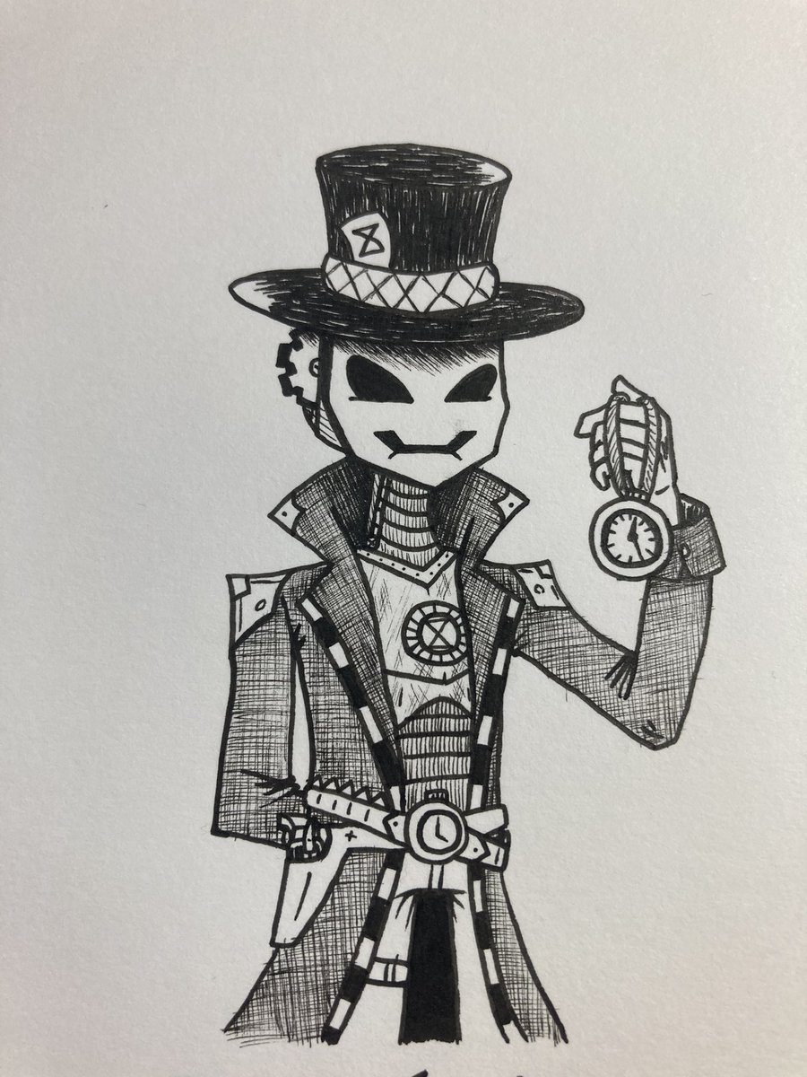 Day 8: Watch - First OC post on Twitter! His name is Professor Pendulum Cogsworth, a robot that works off clockwork #inktober2021 #inktober2021day8 #inktober #day8 #watch #originalcharacter