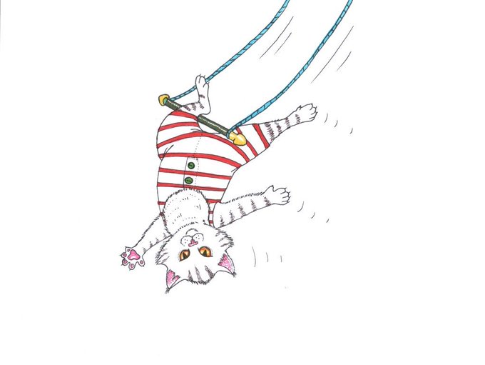 @inktober @JakeParker #Inktober #Inktoberday9 #Inktober2019 #illustration #ChildrensBooks #Kidlitart day 9: #swing Trapeze cat