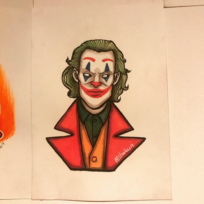 #inktober day 14!🤡😈 saw #joker last week and loved it! Also I rearranged the wall to put all inktobers in order because it was too random and I was wasting wall space #intkober2019 #inktoberday14 #joaquinphoenix