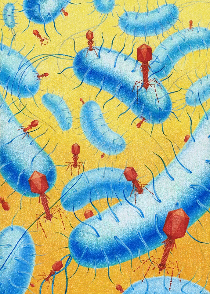 I'm not managing to catch up with #inktober, but I'm going to throw previously created piece for #Microber2021 to support lovely #sciart everyone is doing 💙 Day 10 is for 'defense' and what better describes it than CRISPR-Cas immunity stages🎨