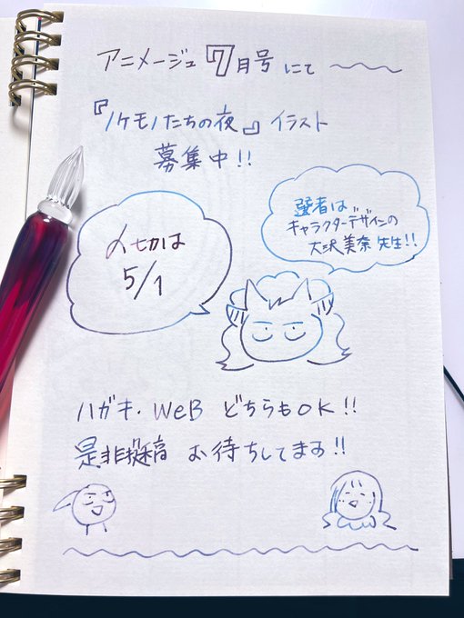 日曜日…ノケアニロス!!! ですがこんな企画が!アニメージュさんのコーナーにて、 #ノケモノのたちの夜 イラスト募集中です。詳しくはツリーをご覧ください↓ 一読者としてものすごく楽しみにしてます!よろしくよろしくよろしく(´∀`) twitter.com/nokemono_anime…