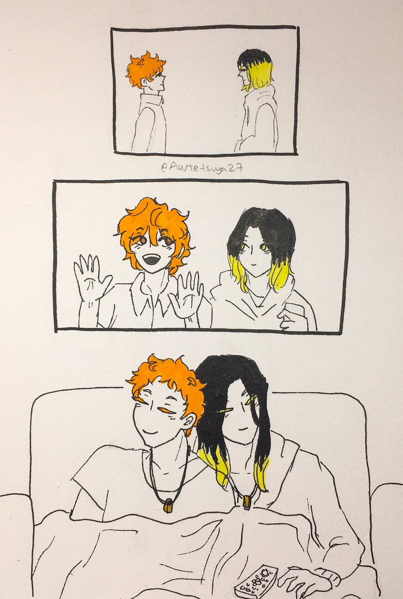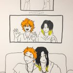 Day 26 - Alongside … Some KenHina for the soul, to get me through this last week of October that has been, though extra fun, also exhausting af #inktober #inktober2021 #haikyuu #kenhina #hinatashoyo #kozumekenma #traditionalart