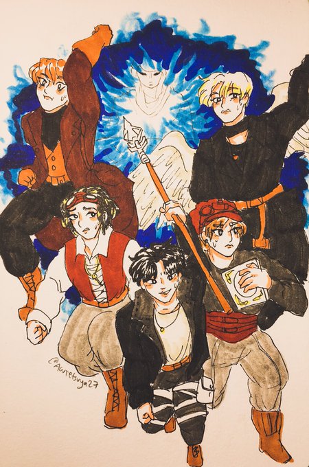 Day 31 - Halloween in Frost … The Frost’s MV had too many good outfits and apparently I wanted to go all-out for the last piece in this year’s inktober #inktober2021 #tomorrowxtogether #txt #yeonjun #soobin #hueningkai #beomgyu #taehyun #txtfanart #kpopfanart #traditionalart