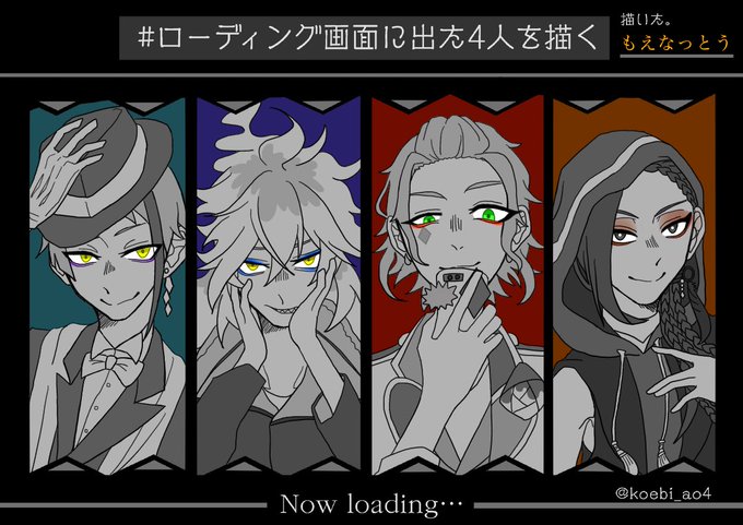 #ローディング画面に出た4人を描く #ツイステファンアート テンプレお借りしました! 全員描きづらくてしんだ