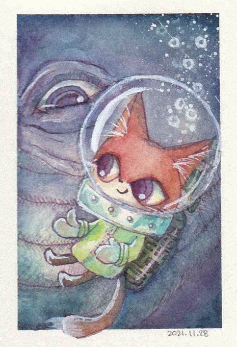 最近🖌練とか色見本しかしてなくて絵を描いていなさすぎる😂ので過去絵を発掘してきました。猫のような謎の生き物が旅する世界とか(稀に)人間などを自分の為に描いて楽しんでます😊へへっ。4枚目はぺんてるのF水彩とカラーインクで塗ったやーつ #5月になったので自己紹介