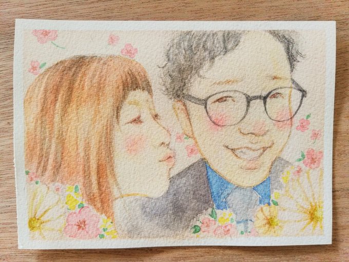 2 23 彼氏さんとそのお母様へのプレゼントに、彼女さんからオーダーいただきました😽💕 ありがとうございました🙏✨ #似顔絵 #プレゼント #水彩 19/06/11 18:48
