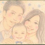 3 13 こちらもプレゼント企画で描かせていただいた似顔絵😊✨ 赤ちゃんの笑顔が本当に天使のようで、パパママも美男美女😍 ご参加ありがとうございました🙏✨ #似顔絵 #水彩イラスト 19/09/22 16:13