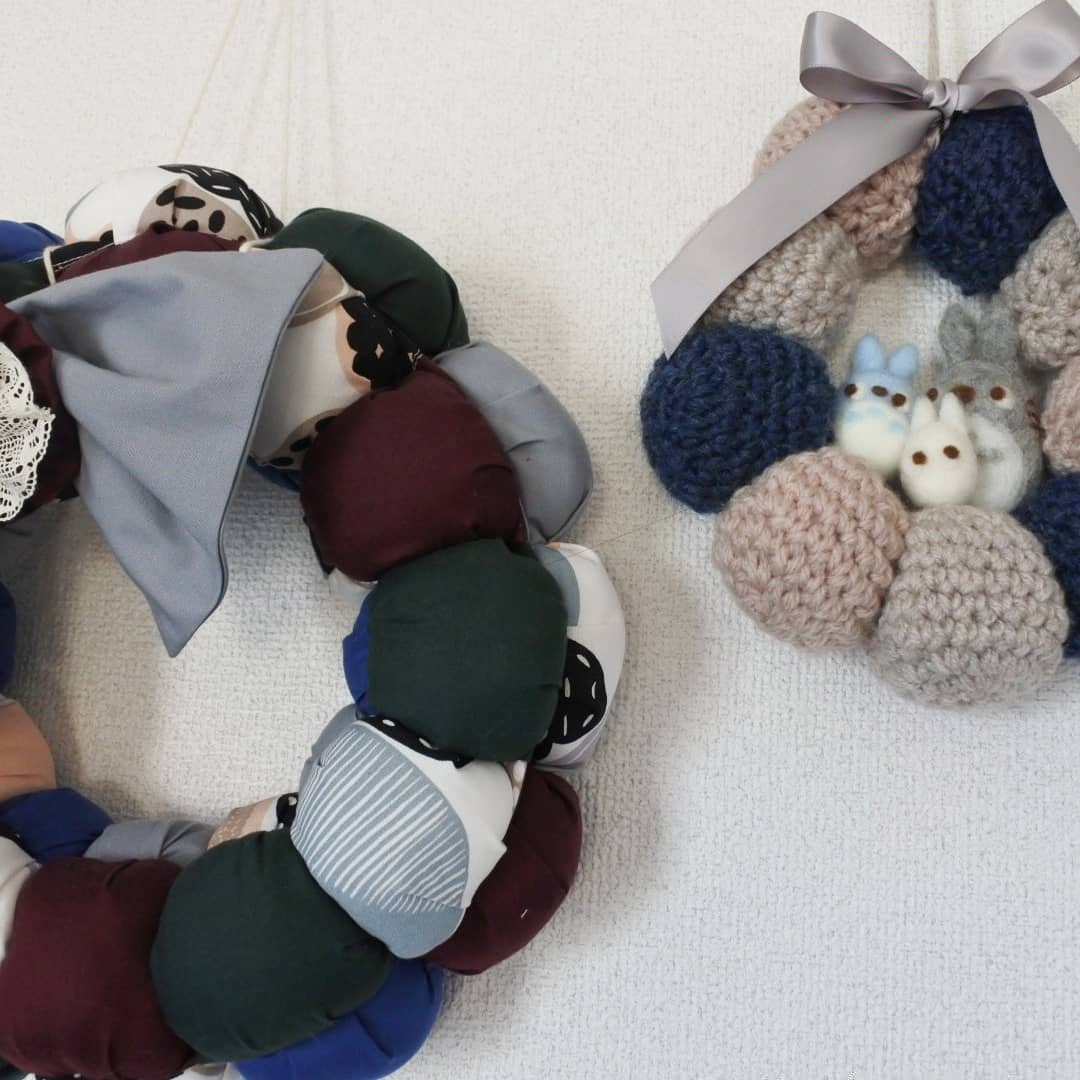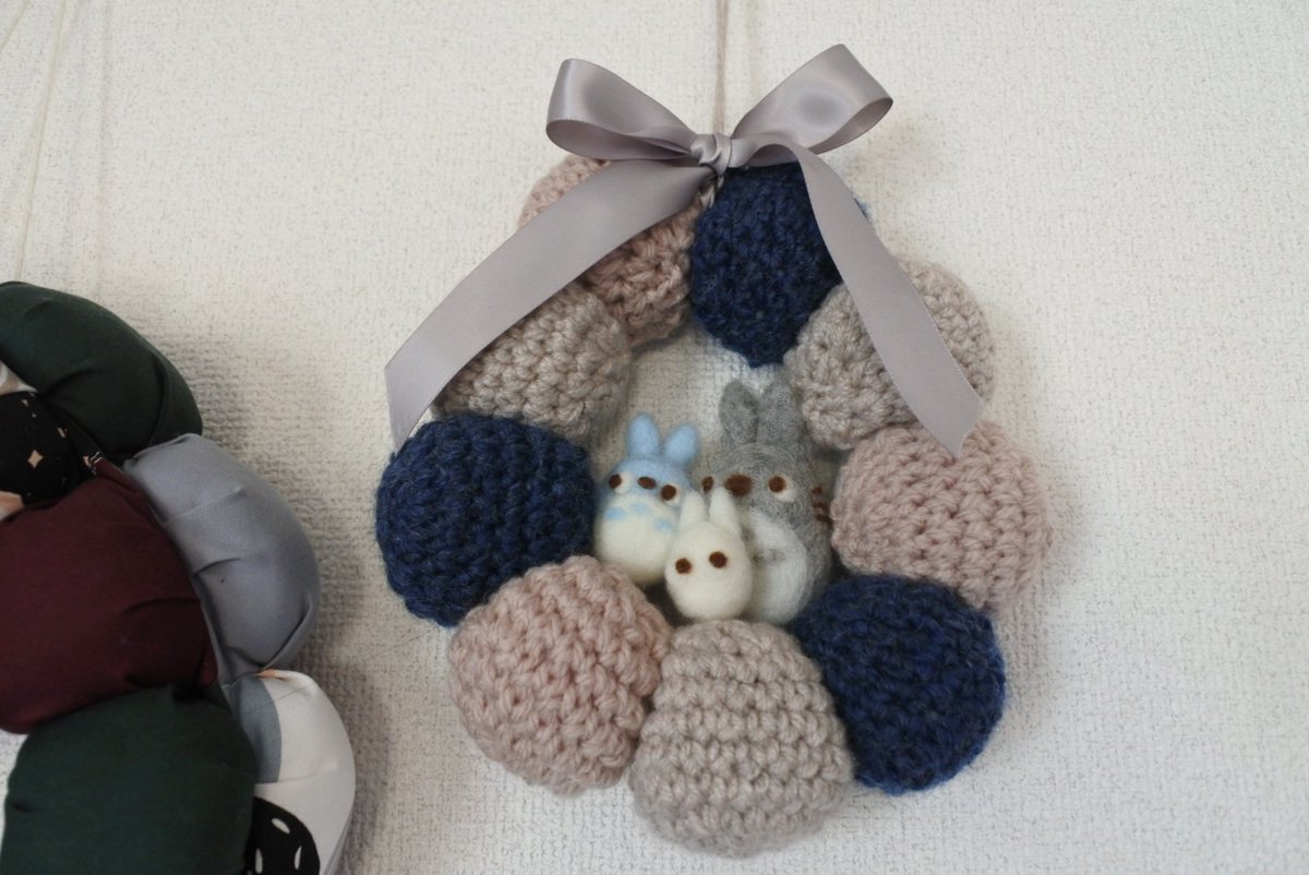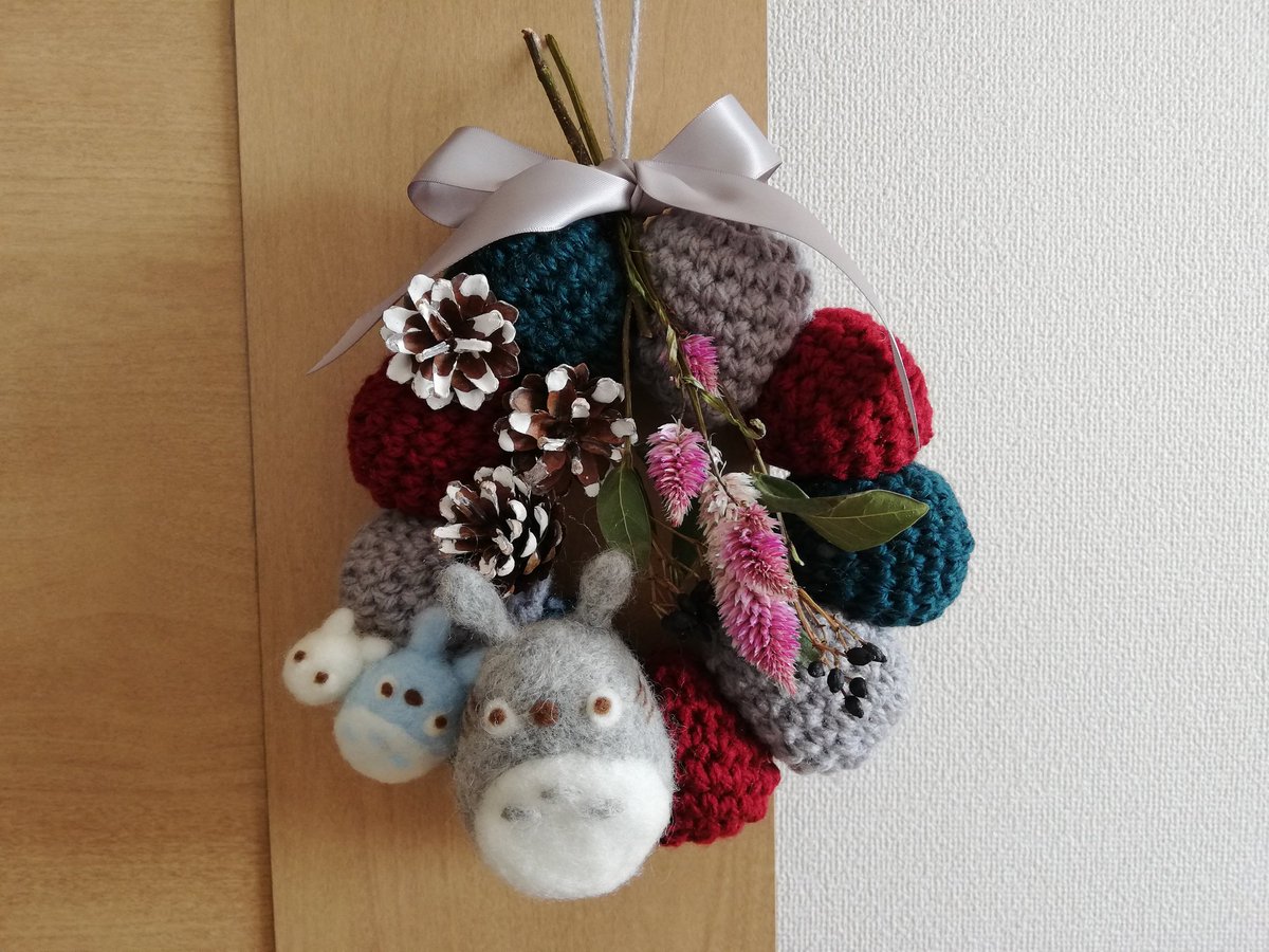 0 9 自分用ニットリース 先日お友達にプレゼントしたのをもっと簡素に?して自分用に ひだりは一昨年作ったパフリース...このときはパワーあったなぁ あとはいたはだいたお花をドライフラワーにして瓶に入れたりもしてみました こういうのたのしい~ #ハンドメイド #羊毛フェルト #かぎ針編み 19/12/24 21:54