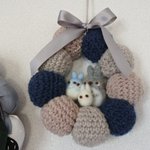 自分用ニットリース 先日お友達にプレゼントしたのをもっと簡素に?して自分用に ひだりは一昨年作ったパフリース...このときはパワーあったなぁ あとはいたはだいたお花をドライフラワーにして瓶に入れたりもしてみました こういうのたのしい~ #ハンドメイド #羊毛フェルト #かぎ針編み