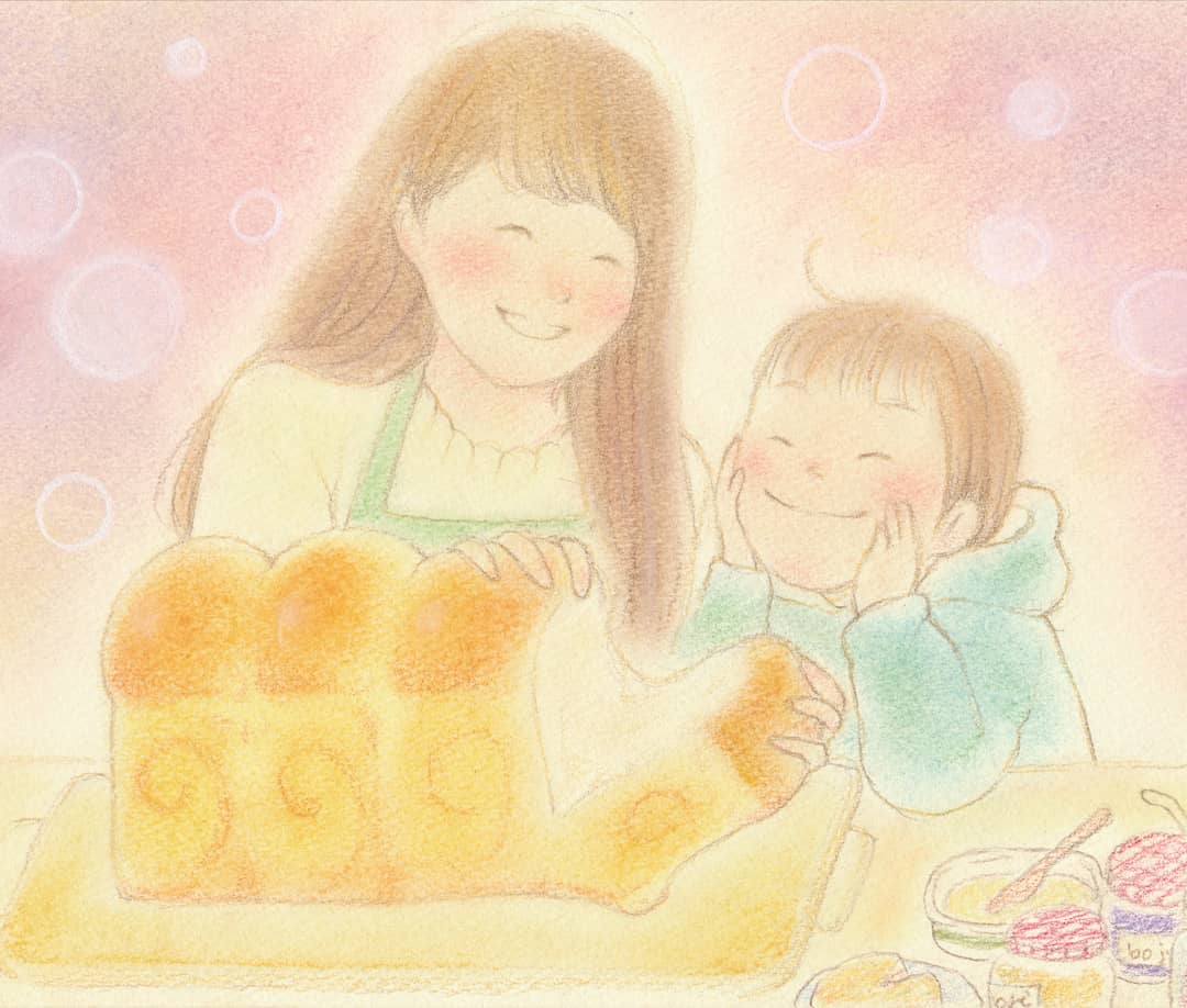 7 62 『LOVEパン展』🍞🥐🥖🥯 本日最終日となります🍀 どうぞよろしくお願いします😊🙌 #イラスト #パステル #パンが好き 20/02/17 07:29