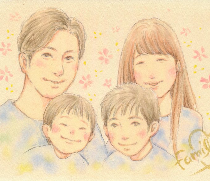 0 11 転居お知らせ用に、家族の似顔絵描きました✨ 自分の顔を描くのが実は一番難しい気がします。。。 そして夫をなんだかさわやかに描きすぎた🤣 #家族 #似顔絵 #水彩 20/07/22 21:47