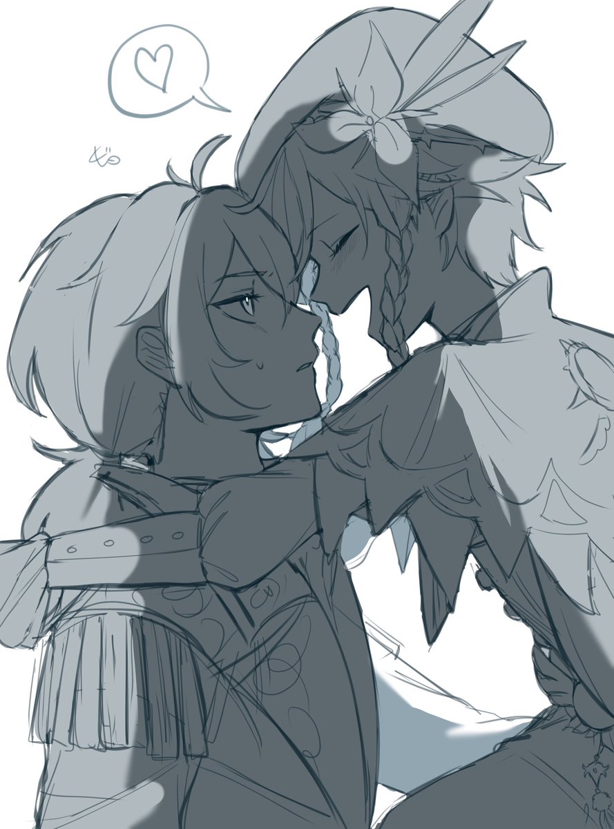 現パロ魈空〜👹🈳💕 やっと描けた! #XiaoAether