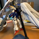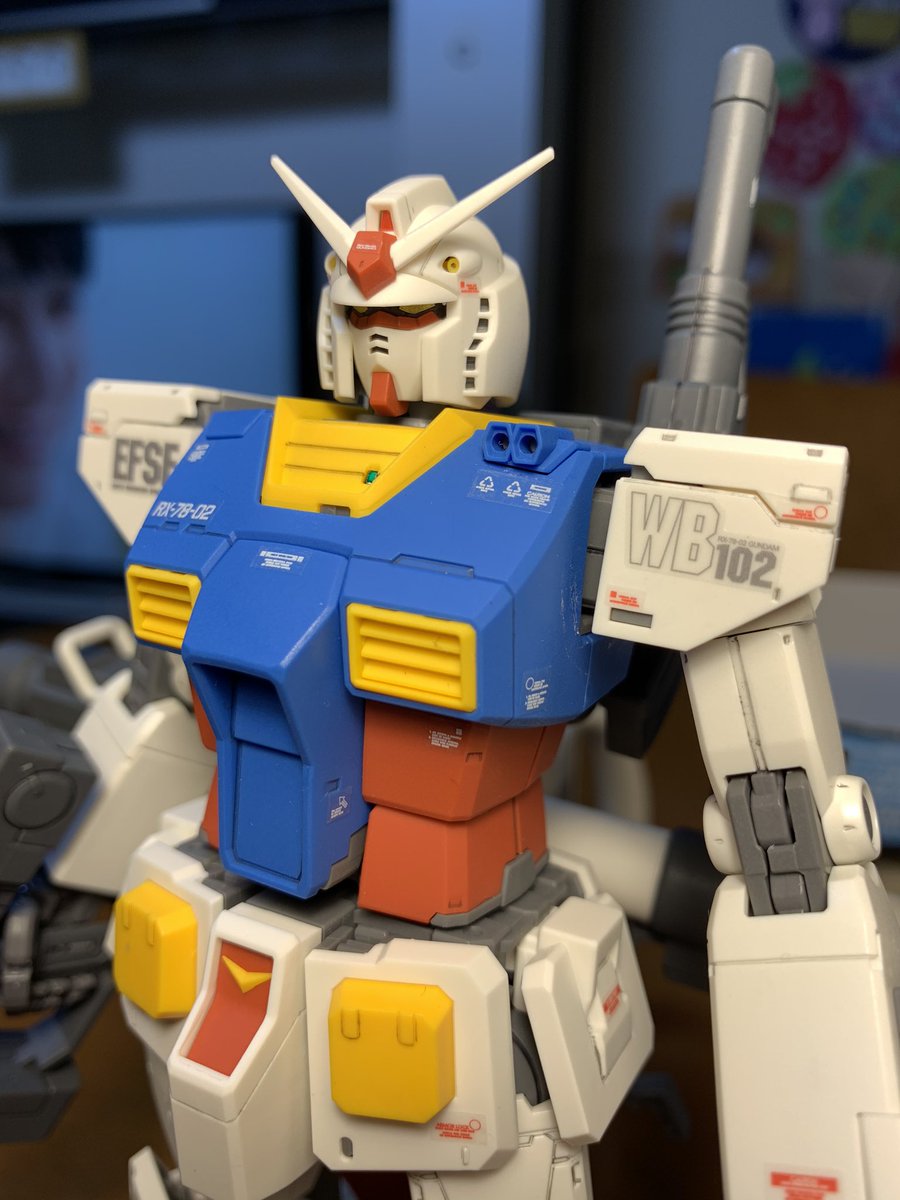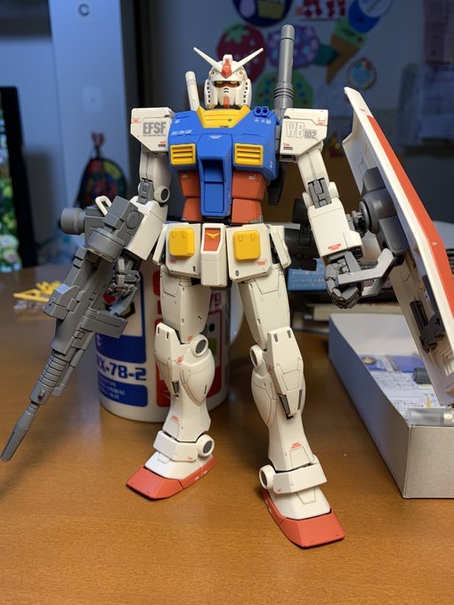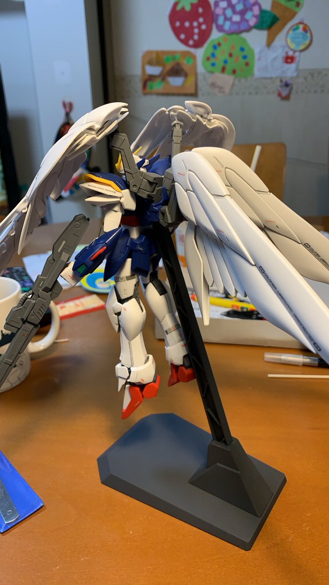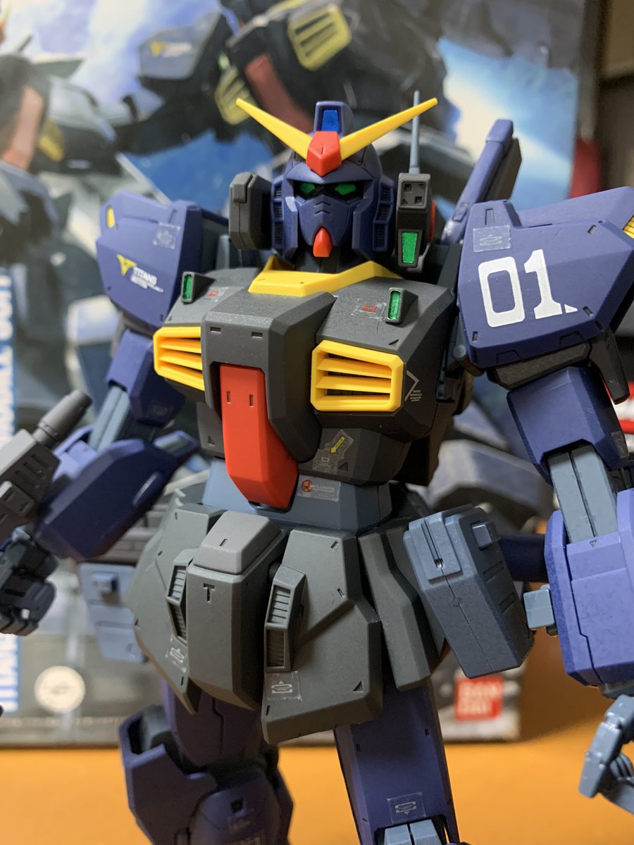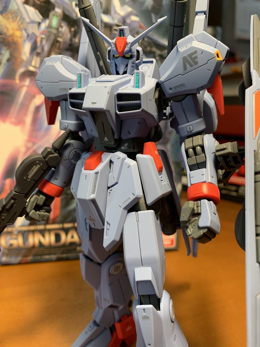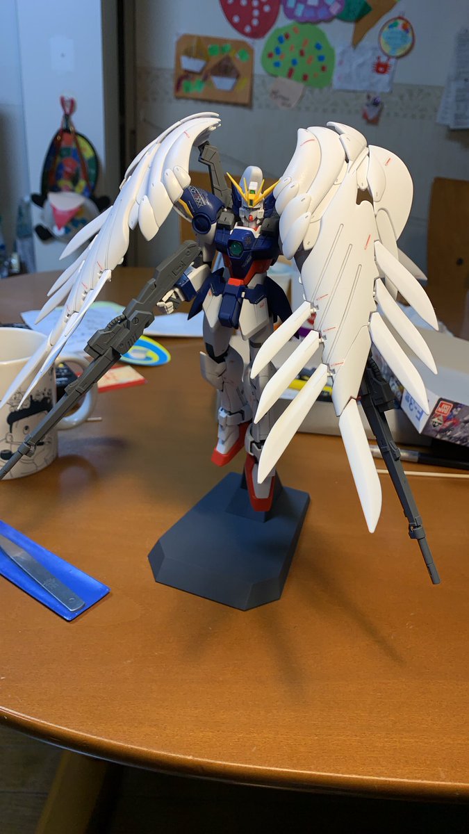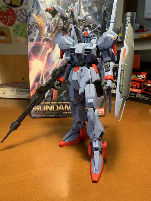 MGイージス完成した!٩( 'ω' )و でもアレやね、変形する系のガンプラは真面に立ちゃしないね…。 フラフラやんけ(ˊᗜˋ) #ガンプラ #ガンプラの画像を貼るとRTされると聞いて #ガンプラ作ろう