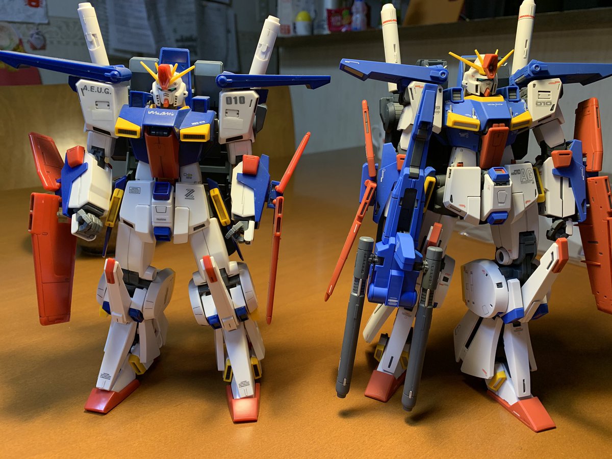久々にガンプラ完成‼️ 艶消し仕様にしてみたけど…うん、イイ感じやん‼️ 前作のシナンジュと並べよう٩( 'ω' )و しかしVer.Kaの水転写シールは苦行…💧 #ガンプラ #MGサザビーVer.Ka #ガンプラの画像貼るとRTされると聞いて