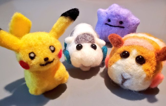 アビーくん作りました🐹(一番左) 上のモコモコ加減が難しかった😂 #プイプイモルカー #羊毛フェルト