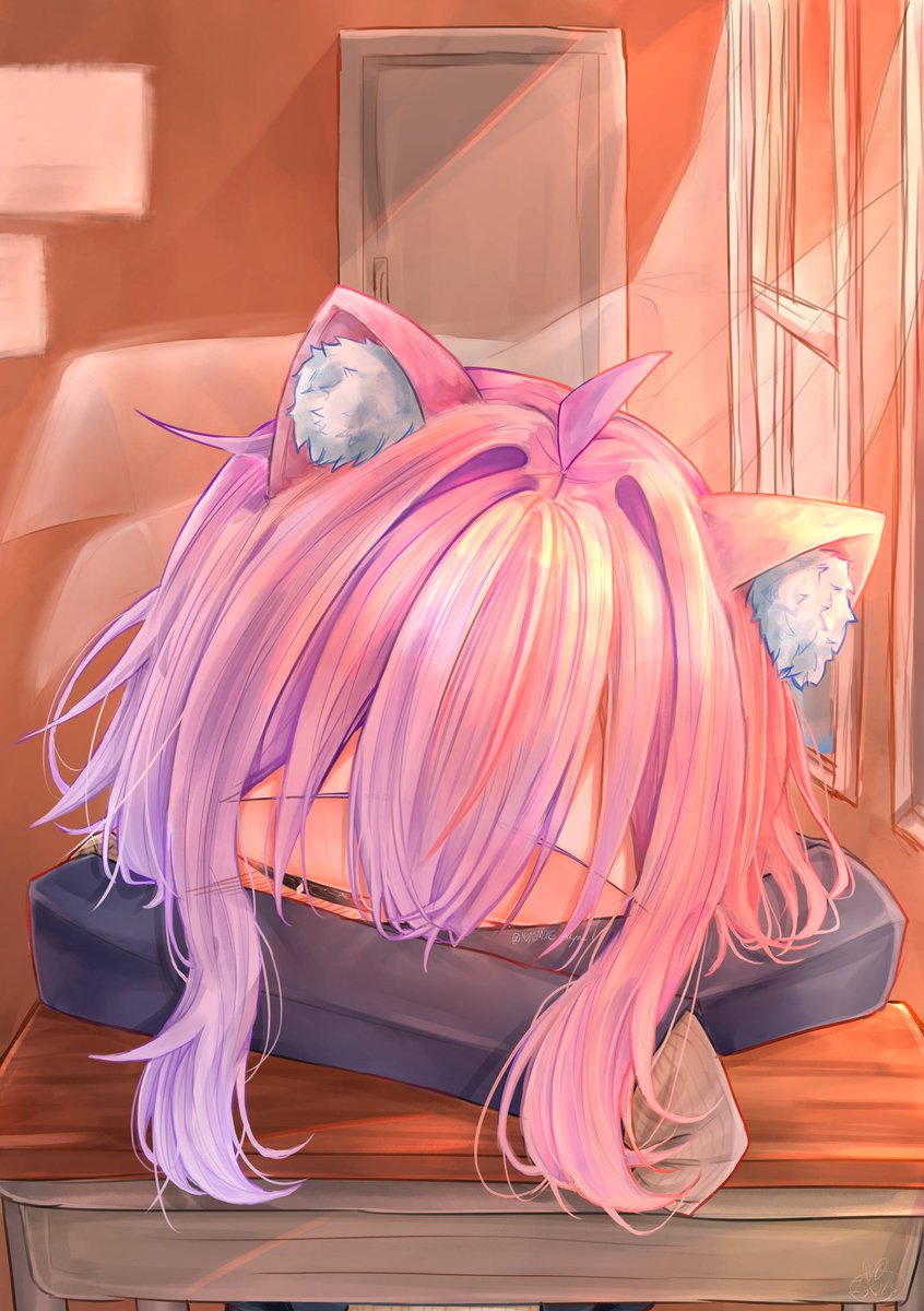 おかゆん、起きて〜もう帰ろ〜〜 #猫又おかゆ #絵かゆ #生おかゆ