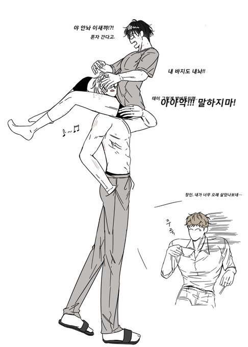 공 수 체격차이 엄청 나보이길래 냅다 읽는중인데 갓댐.. 수가 공에게 크롭티를 주고 공이 한층 더 섹시미가 더 해짐