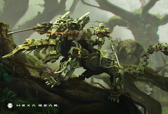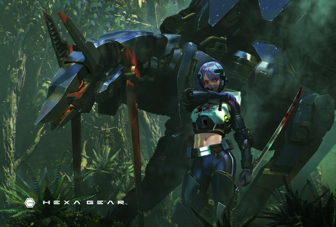 少し前ですが、 ヘキサギア ロード・インパルス 密林迷彩仕様好評発売中です。 kotobukiya.co.jp/product/produc… 付属カードは密林。霧の中でのスニークミッション、といった感じです。