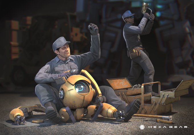 遅ればせながら ヘキサギア ガバナー エンジニアセットA発売です♪ キャラクターデザインとパッケージアートやっています。 今回は町工場な感じを目指して描きました。 kotobukiya.co.jp/product/produc…