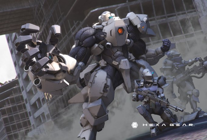 ヘキサギア オルタナティブ トラックダウン発売です! kotobukiya.co.jp/product/produc… 現実の陸戦ロボットがヘキサギア化したようなコンセプトでデザインしました。 歩兵の小火器を携行しているのがポイントです。 パッケージのロゴ無し版はこんな感じ。