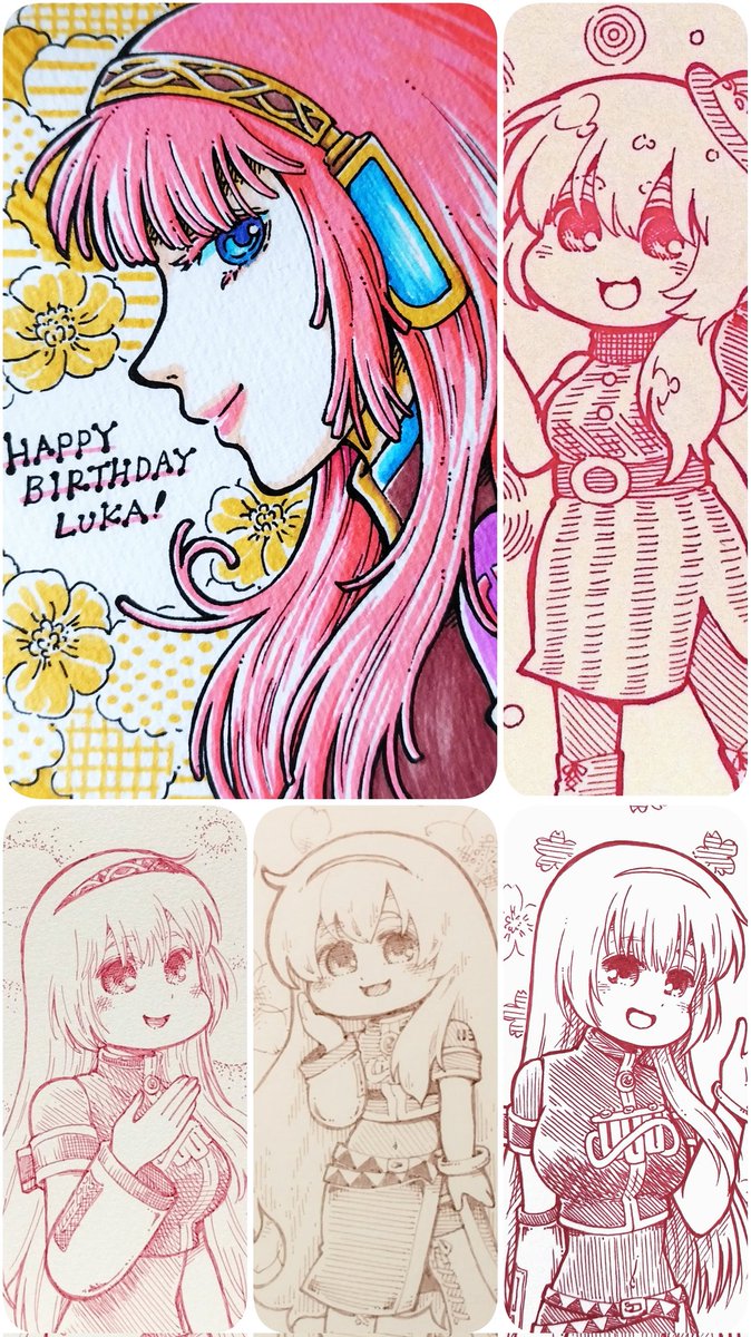 #今月描いた絵を晒そう ルカちゃんとアップダウンした月でした〜!誕生日おーめでとー🎊🎉 いつも助けてくれてありがとうめーこちゃん😚