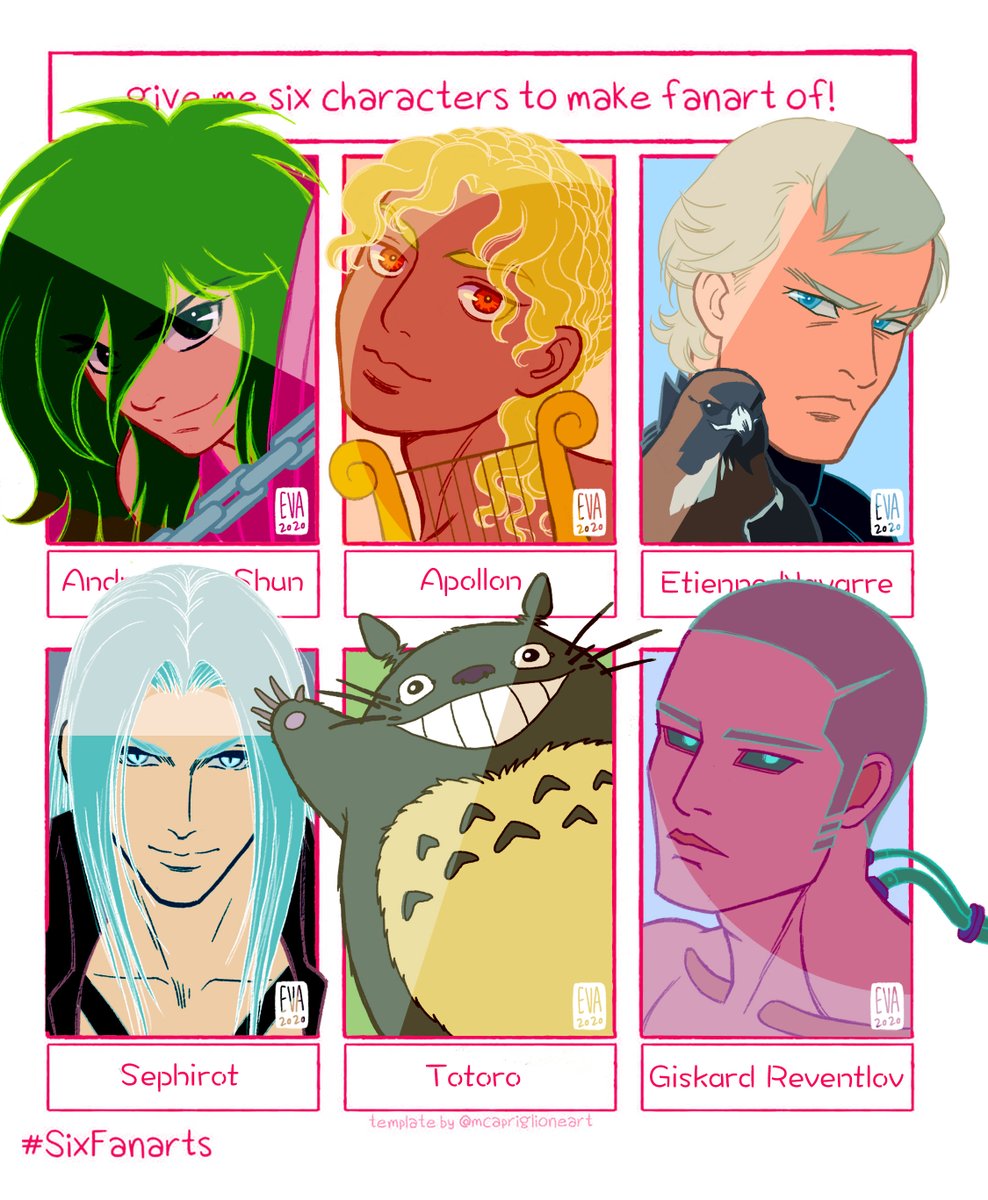 I managed to make first six. As You can see they are all bishounen. Someone can say Totoro is not a bishounen? I DON'T THINK SO. . #SixFanarts #sixfanartchallenge #AndromedaShun #apollon #etiennenavarre #sephirot #totoro #giskardreventlov