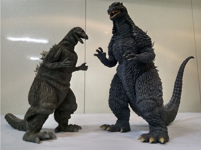 ゴモラに続き,手持ちのゴジラで親子を表現してみました😌 エクスプラス・東宝大怪獣シリーズのゴジラ1954とゴジラ2002です 私的に初ゴジと釈ゴジは親子だと解釈しております😉 #あなたのソフビ紹介 #オモ写