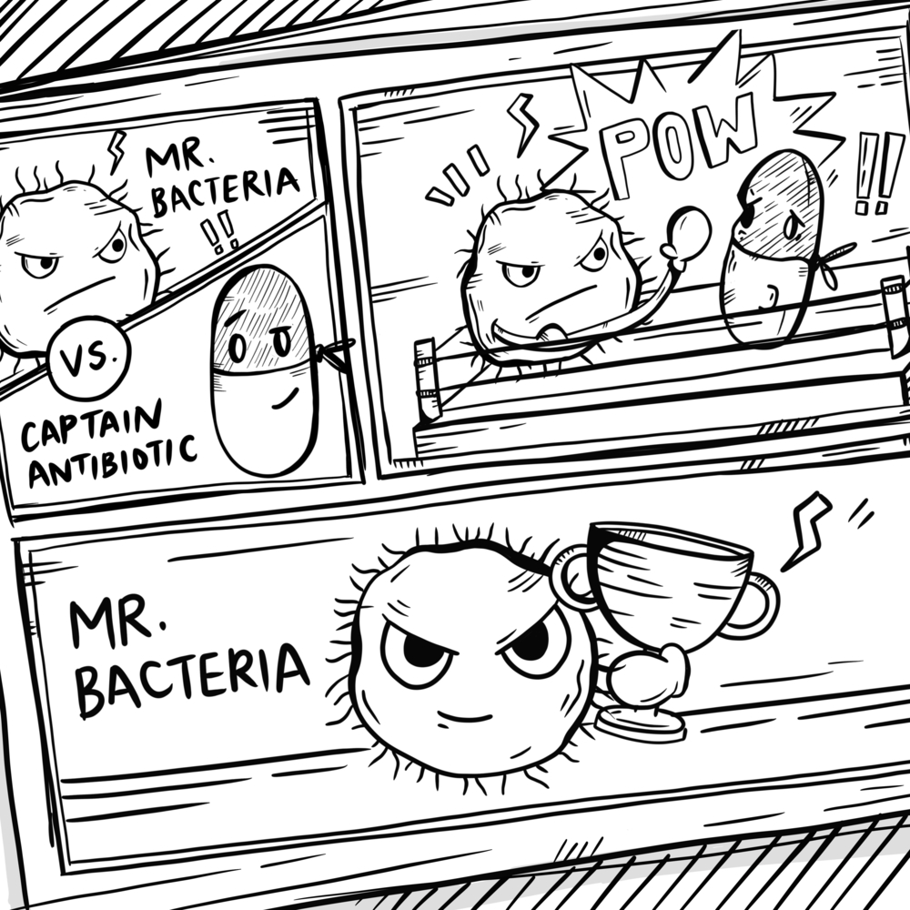 🦠✋Todos tenemos un papel que desempeñar en la lucha contra la #resistenciaantibiotica: No consumas antibióticos en exceso. El uso irracional de antibióticos puede provocar resistencia a los antibióticos, como vemos en esta ilustración de Abeer Anabtawi. #inktober2021