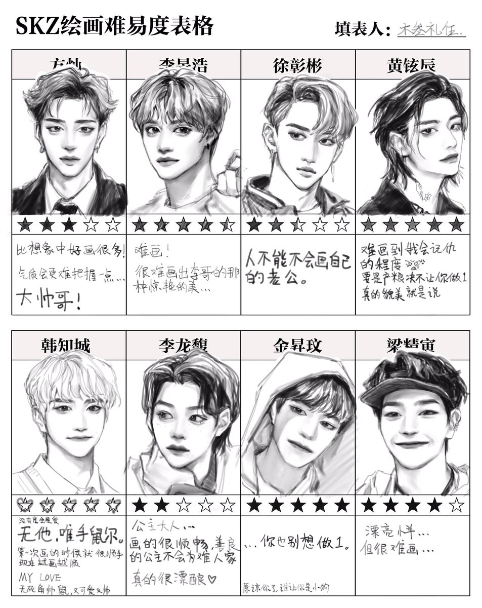 3 20 填了Stray Kids的绘画难易度表格 #straykidsfanart 22/09/24 15:07
