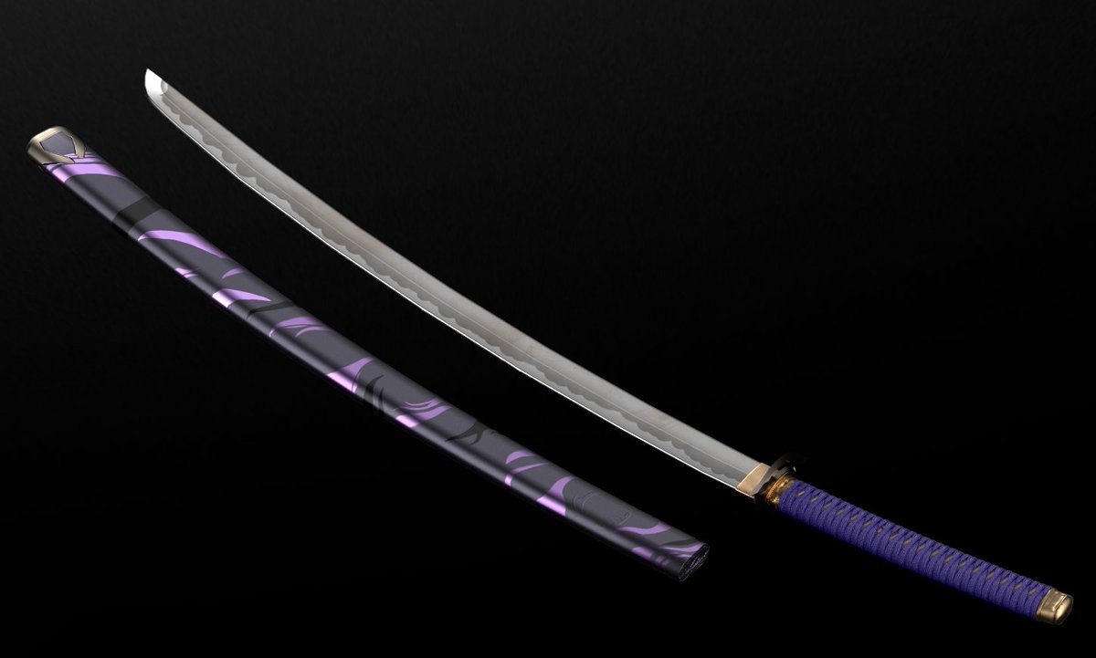 ファンアート: Vtuber都みゆりさんの刀の1本を3Dで。 全体のテクスチャ描き上げまで完成~(´∀`)模様は大体のイメージなのですが。 年内登録者数3万人、応援しています! #みゆり絵