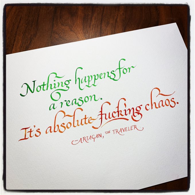 12 71 Best line of the night so far. Well done, @matthewmercer - much appreciated! Also, a universal truth. @CriticalRole #criticalrole #calligraphy #criticalrolefanart #chaos #order instagram.com/p/B8jAUi4jA9A/ 20/02/14 21:21