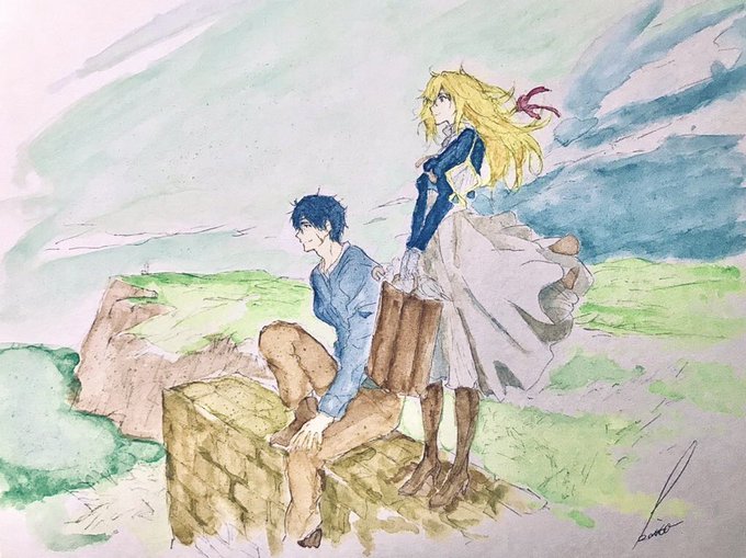完成しました。京都アニメーション様に感謝を込めて。 ぜひ画面を横にしてご覧ください #京都アニメーション #ヴァイオレット・エヴァーガーデン #模写 #水彩画