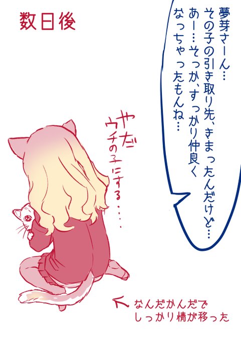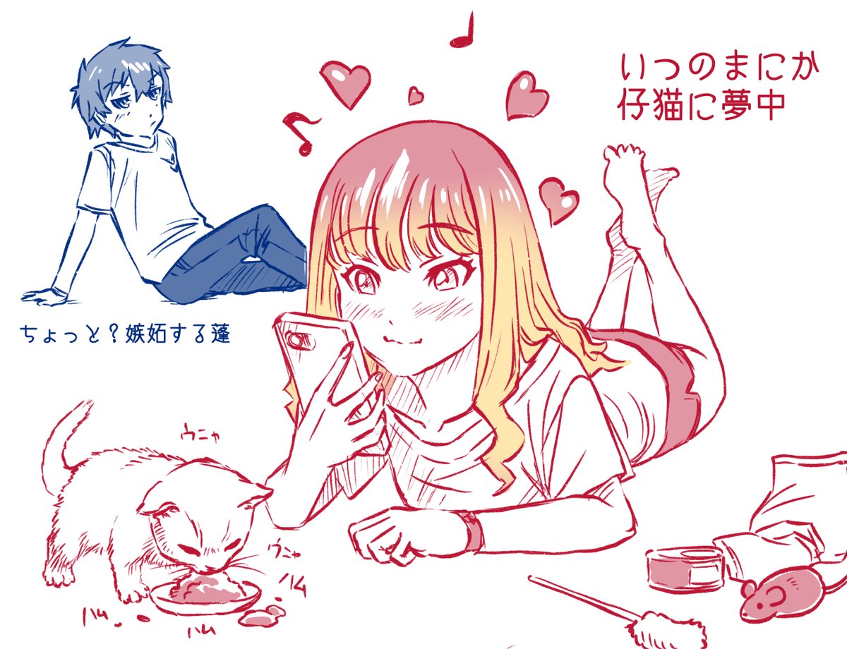 今日のよもゆめらくがき。仔猫に浮かれポンチな夢芽さんとモヤる蓬。リンクした前回絵の後、そしてリプ欄の3枚目の前ですね。明日は南夢芽さん生誕祭り?そっちもなんか描くかも… twitter.com/MUGI30007073/s…