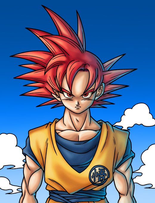 『超サイヤ人ゴッド 孫悟空』 神と神公開10周年記念に描きました‼︎ #ドラゴンボール