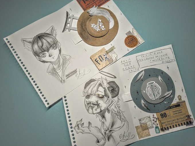 最後のやつは後で他2つみたいにするよ オリジナルのイラスト描くのはやっぱ楽しい(o´∀`)b #オリジナルイラスト #人外 #イラスト #オリジナル #飛び出すカード