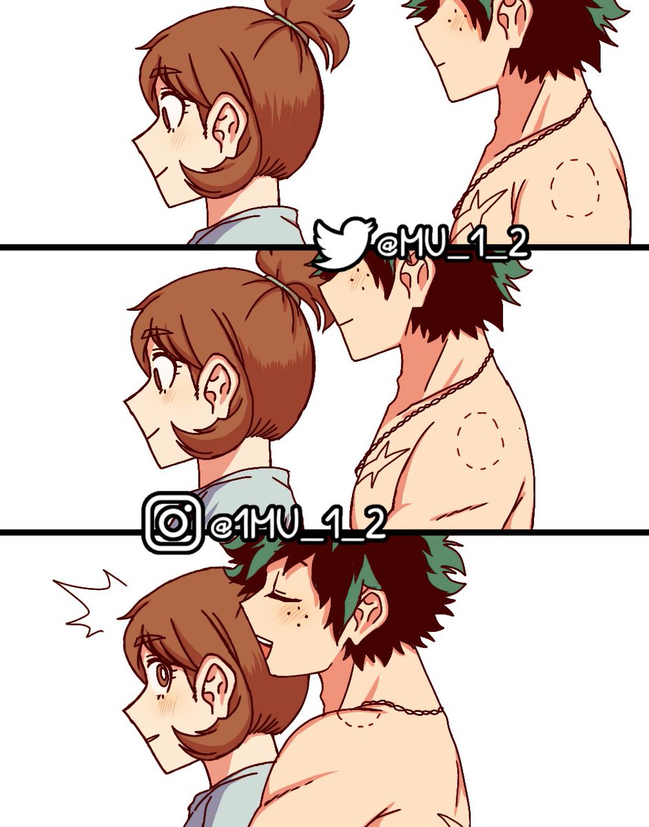 Even though Ochako has said a lot that his hair tickle her . But Deku still rubbing his head to her neck anyway, because he love hearing her laugh (Bad English :'>) #Izukumidoriya #Izuocha #dekuocha #deku #urarakaochako #MHA #MyHeroAcademia