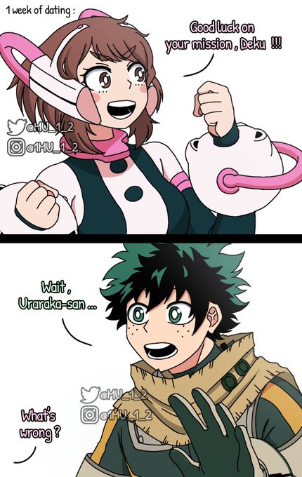 1 week of dating vs 6 months of dating Sorry for my bad English :">> #Izukumidoriya #Izuocha #dekuocha #deku #urarakaochako #MHA #MyHeroAcademia.