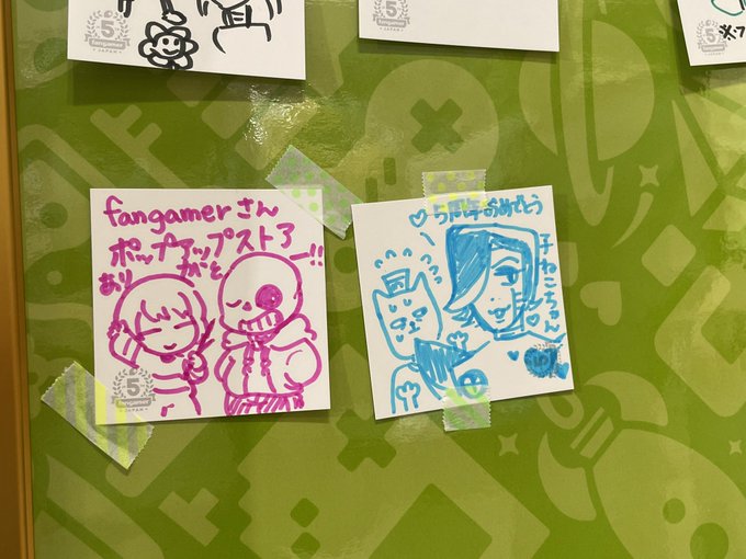 抜き打ちテスト並みに久しぶりにサンズ とフリちゃん描いたからちょっと形が歪になちゃったしクソでか感情すぎて文字の入るとこ無くなりましたw お隣は一緒に行ったフォロワーさんの。だーれだっ